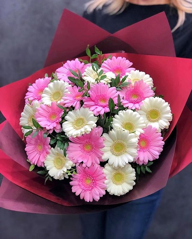 Преподнести букет из гербер можно по любому поводу: на день рождение или годовщину, на юбилей, к 8 Марта.