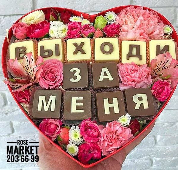 Команда Rose Market изготавливает и доставляет наборы из цветов и шоколадных букв